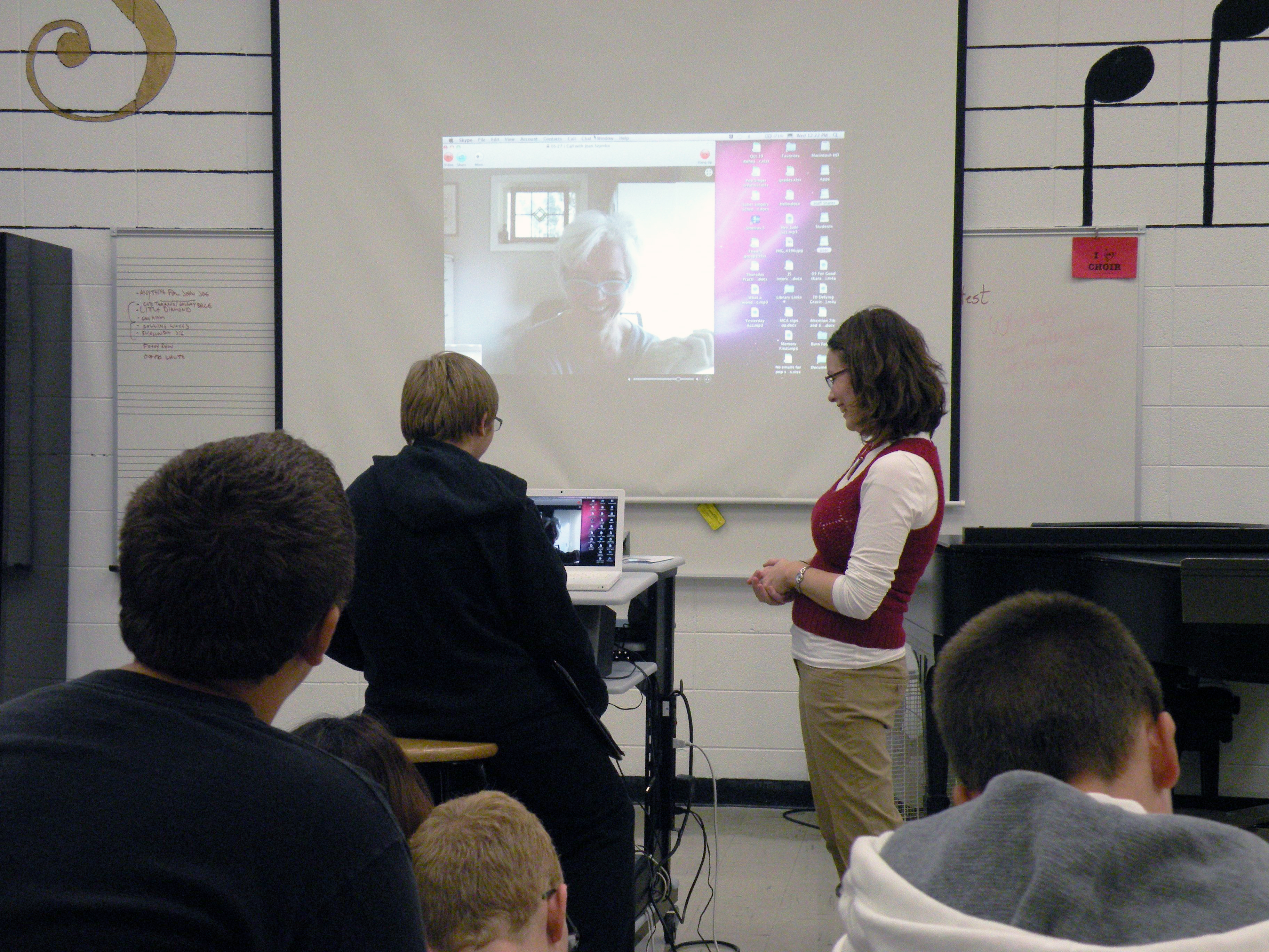 Collaborating via Skype with choristers at Frankilin HS, Franklin, WI